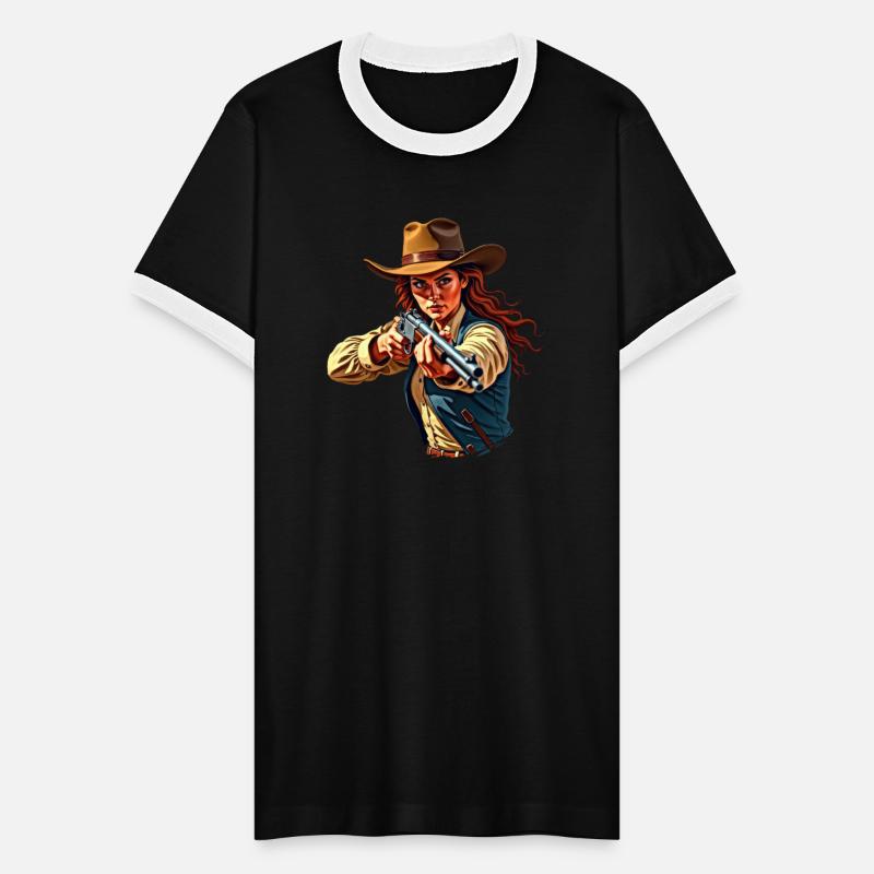 Cowgirl aiming rifle in action